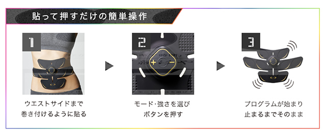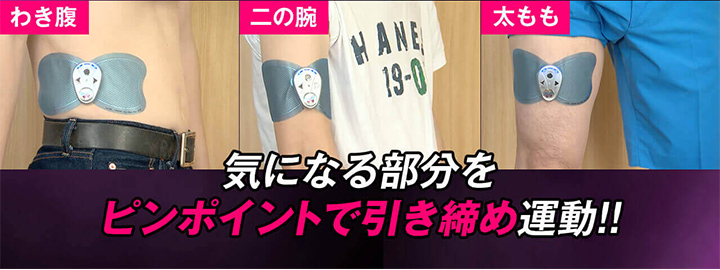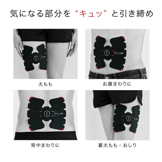 しかもお腹だけでなく、わき腹や二の腕、太ももといろいろな場所に貼り、トレーニングできるのも嬉しい。気になる部分がたくさんあるにおすすめです。