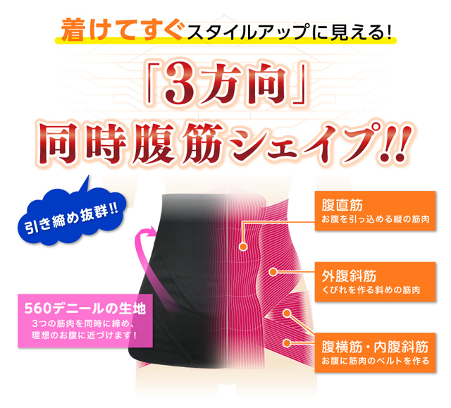 560デニールのパワーで3方向から3つの腹筋を同時に刺激するので着るだけで理想のスタイルに!