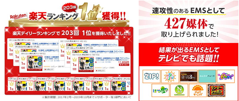 シリーズ累計95万枚を突破し、多数のテレビや雑誌で紹介され楽天ランキングでは203回も1位を獲得したほどの実力派EMS!
